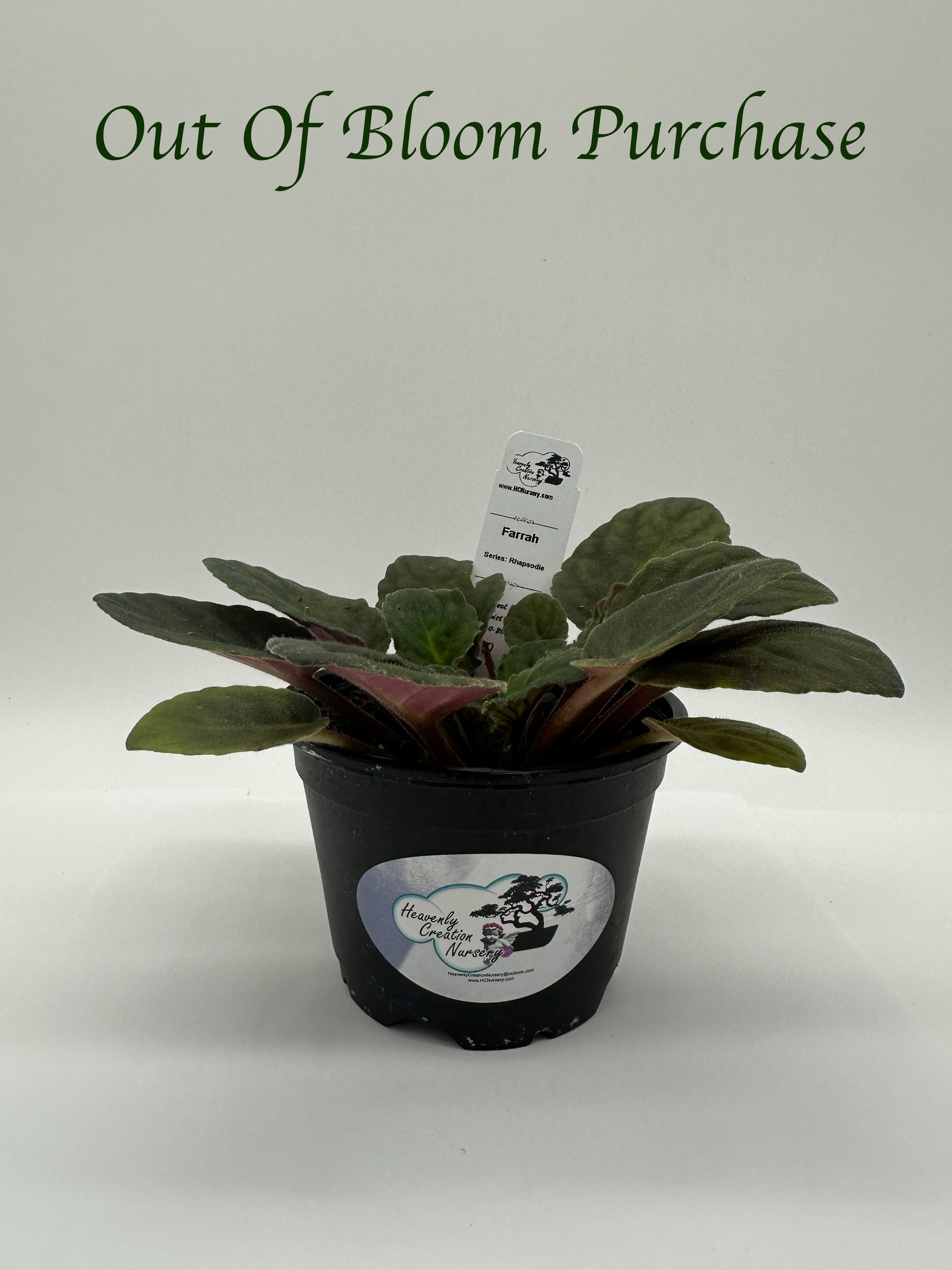 We offer mature African Violets that are in bloom / already budding as well as ones that have already been through their first blooming cycle ('Out Of Bloom' option). We do this so you have a choice to not have to wait to enjoy your plant in bloom or save money purchasing one that isn't blooming at the moment.